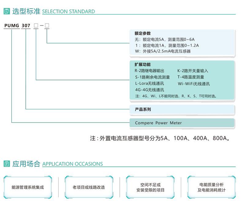 PUMG307具有體積小巧,精度高,可靠性好,安裝方便等優點,多用于系統集成、改造工程、安裝空間有限或不便的項目。標配1路RS485通訊接口,可通過Modbus-RTU或DL/T645-2007通訊協議實現儀表的網絡