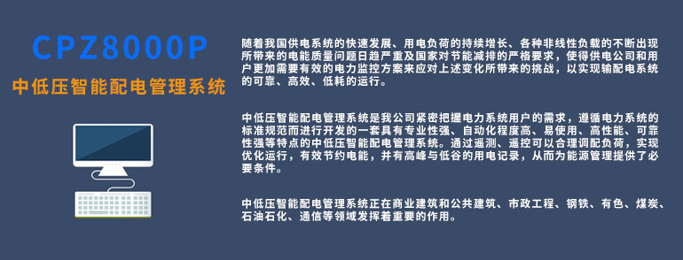 CPZ8000P中低壓智能配電管理系統,是基于C/S架構的配電管理系統。該系統具有專業性強,自動化程度高,易使用等特點。通過合理調配負荷,實現優化運行,達到有效節約電能的目的。