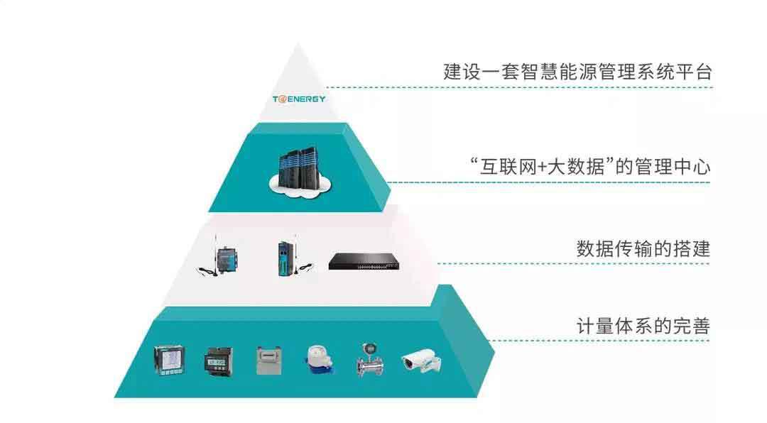 T@Energy智慧能源管理系統對能源使用情況,對設備運行實行集中監測、管理和分散控制。以區域數據為基礎,結合“互聯網+大數據”的有效利用,自由組合成多個“能耗單元”,通過智慧能源綜合管理平臺的實現能碳管理、能耗分析、單耗指標、專家評估、智能預測等。主要側重于對水、電、氣、暖的用能分析。大屏展示: