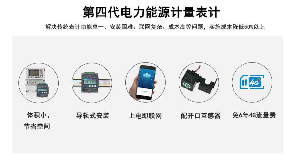 新型智能電表安裝方便,開口式互感器、免布線安裝,內(nèi)置4G/GPRS無線模塊,無需額外配置采集設(shè)備, 使用戶可以低成本的應(yīng)用我們的服務(wù),購買電表還可免費(fèi)贈送配套的能管掌中寶系統(tǒng)。