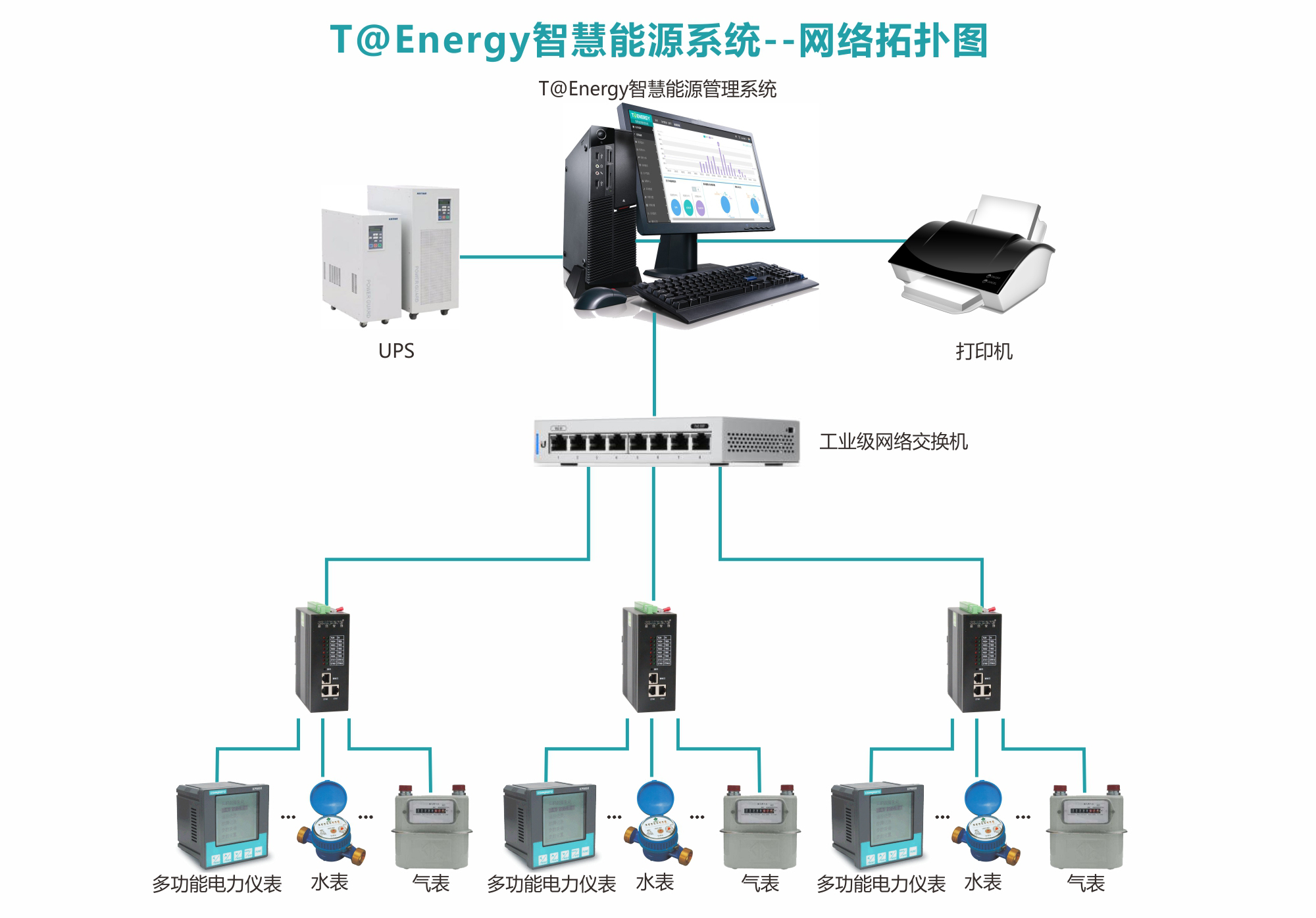 能效管理層是人機(jī)交互的窗口,也是T@Energy 能源管理系統(tǒng)的重要組成部分,該層級主要由數(shù)據(jù)顯示氣、監(jiān)控主機(jī)、打印機(jī)、UPS不間斷電源組成,可實(shí)時(shí)顯示和處理設(shè)備采集的數(shù)據(jù)和測控信息號。