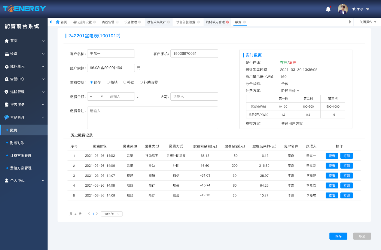 預付費系統公司研發的系統可幫助物業公司實現對各地物業的出租商鋪、辦公室的電費預付費管理,也適用于學生宿舍電費管理。租戶預存電費,余額不足系統通過短信提醒,租戶通過微信、支付寶、等方式自助充值。系統自動統計已充電費、已用電費、剩余電費并形成財務報表,實現預付費系統的自動化運行。