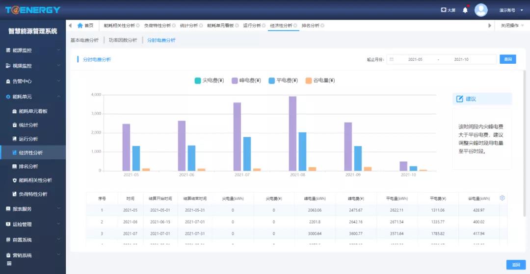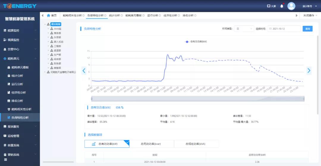 智慧能源管理系統(tǒng)與工商業(yè)用戶用能管理相關(guān)的部分功能展示: