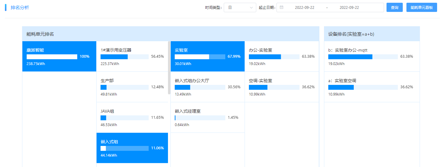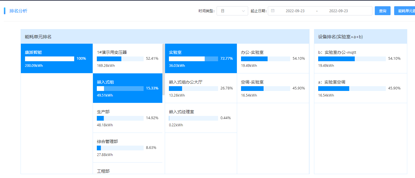 沿途索驥。通過前后兩天的能耗排名變化,確定異常用能部門。嵌入式組的用電排名,22號(hào)在第4位,23號(hào)升到第二位,多出了5kWh左右。通過對(duì)嵌入式組下一級(jí)的能耗對(duì)比發(fā)現(xiàn)為實(shí)驗(yàn)室用能比前一天多了6kWh左右,再進(jìn)一步對(duì)實(shí)驗(yàn)室的下一級(jí)能耗分析,發(fā)現(xiàn)為實(shí)驗(yàn)室空調(diào)比前一日多了6kWh。可以初步確認(rèn)是實(shí)驗(yàn)室的空調(diào)在非工作時(shí)間沒有關(guān)機(jī)。