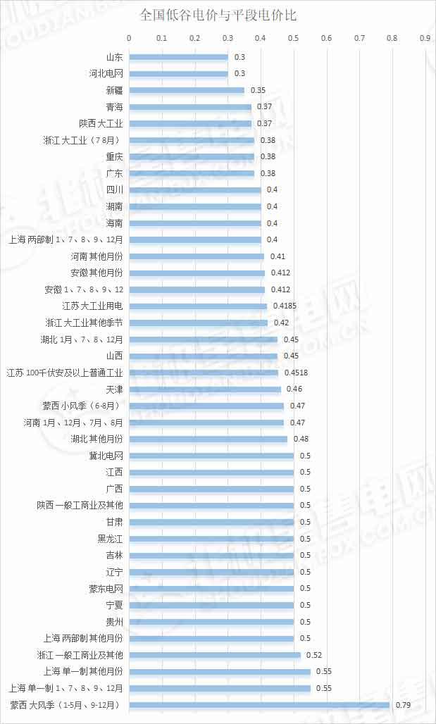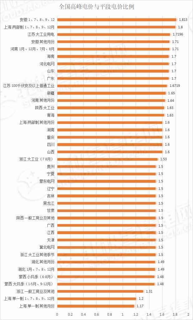 全國各地分時(shí)電價(jià)-峰谷電價(jià)的浮動情況
