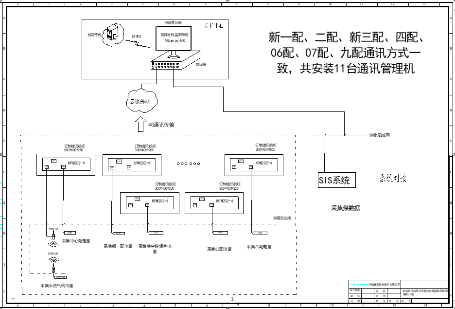 企業現有3條總進線,電廠1#聯絡變和電廠2#聯絡變兩條總進線進線柜位于35KV開閉所配電房內,需加裝2臺三相導軌式智能電力能效終端KPM37-W采集上傳數據;金雞灘變電主進線位于工業場地35KV配電房內,需加裝1臺三相導軌式智能電力能效終端KPM37-W采集上傳數據。