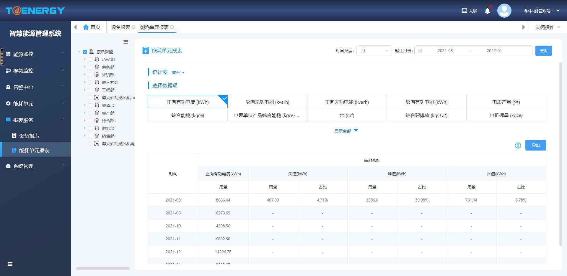 對不同類型的能源介質、用能設備進行監控分析其用能概況,可以查詢不同時間段內用能設備的用能情況,以便于對能耗異常情況的分析。